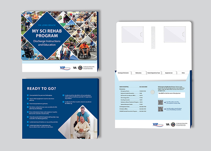 These materials are a stylistically cohesive suite designed to help patients and caregivers more easily manage and navigate their care within the VA Long Beach Healthcare System. Consistent design styles and elements are employed to create a strong brand identity.